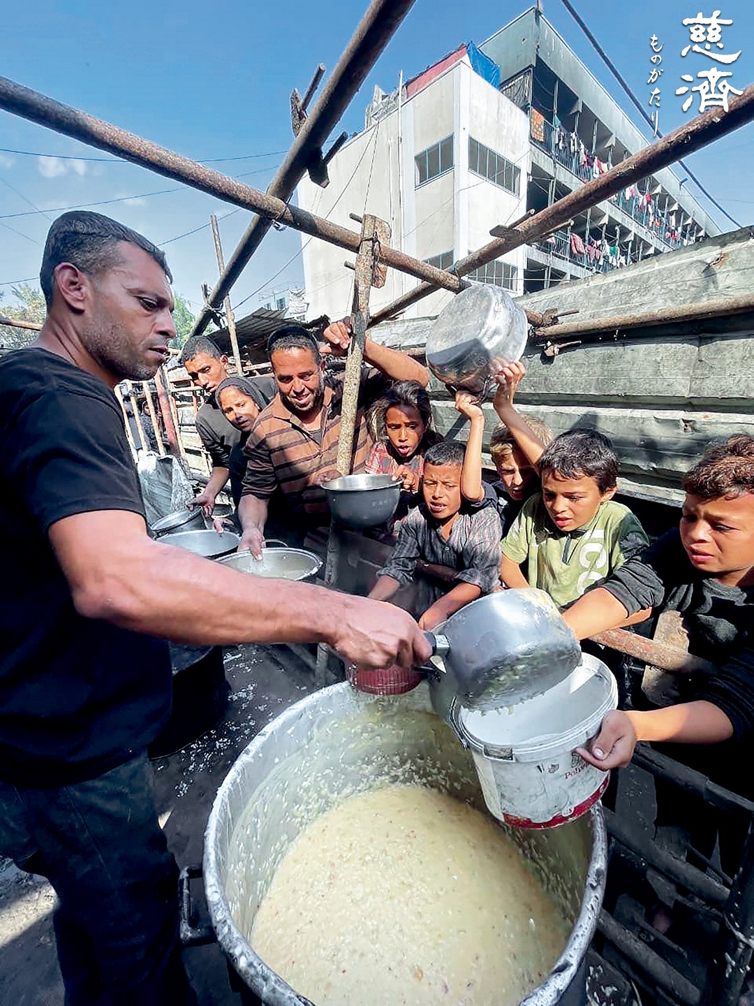 トルコの慈済ボランティアは、台北清真寺と協力してガザ地区に食糧を提供した。現地の人々が配給された米でお粥を炊き、飢えに苦しむ同胞を支えた。(写真提供・胡光中)