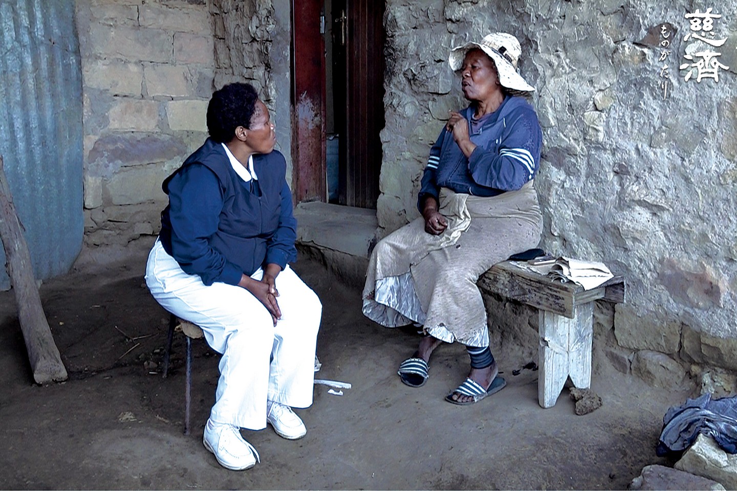 川向こうの部落にはおよそ千人が住んでいる。村から村へ訪問ケアを行う時、ボランティアたちは道すがら高らかに歌いながら歩く。苦行の歩みの背後で、大きな愛が彼女たちを支えている。