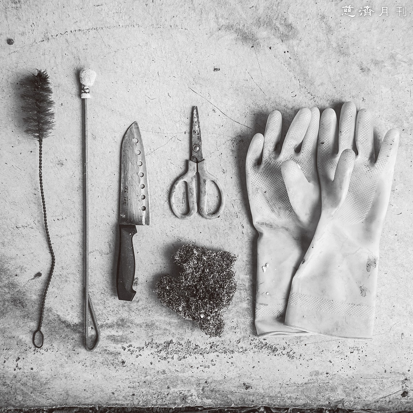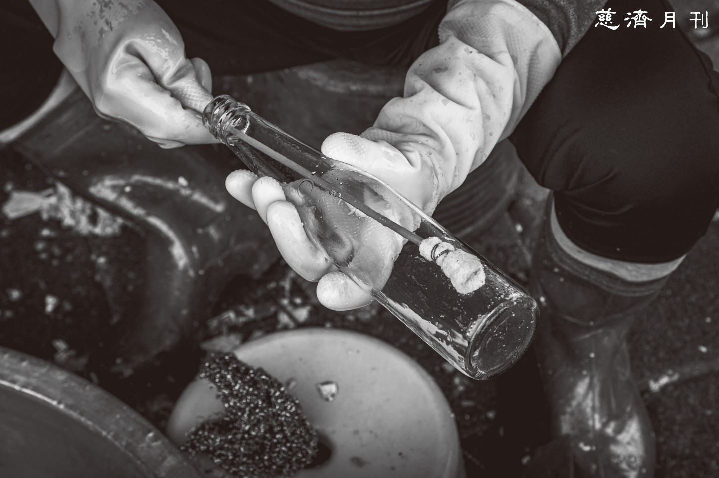 每一項清洗玻璃瓶的工具都是從回收物中惜福再運用
