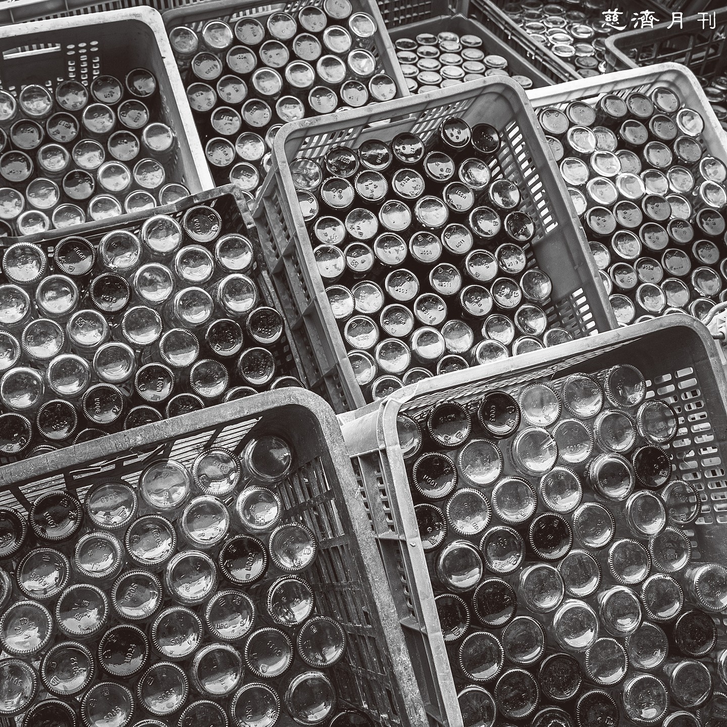 清洗完成的玻璃瓶會依序排進塑膠籃,待自然晾乾後便可交給工廠