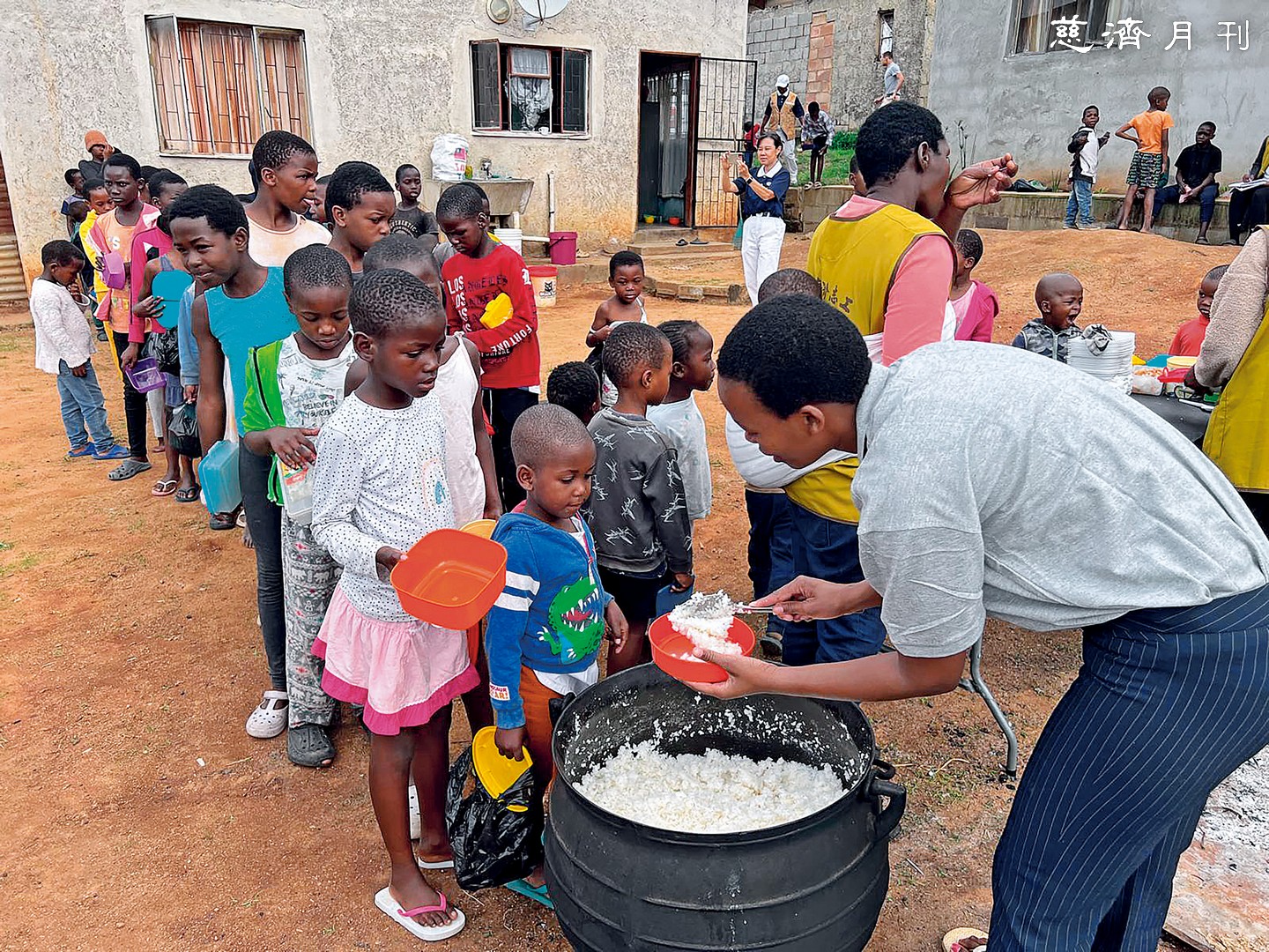 由於先生前往史瓦帝尼工作,李后玉在抗癌成功後,於二○二○年到非洲與先生團聚。當時她只是很單純地想去放假一個月,沒想到在參與當地慈濟活動,看到本土志工煮熱食供餐、發放臺灣愛心米,她悄然萌生「如果能留下來久一點,我就能幫助更多人,為當地減輕苦難」的想法,儘管新冠疫情在當時看不到盡頭,她依然決定留下來。