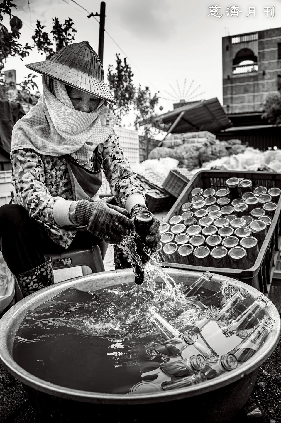 在慈濟臺南鹽水環保站,一群七旬環保志工組成「洗瓶隊」,五年來將回收玻璃瓶浸泡後,一一刷洗、刮去標籤,給予它們新的出路―由工廠收購,作為盛裝油漆溶劑的容器。