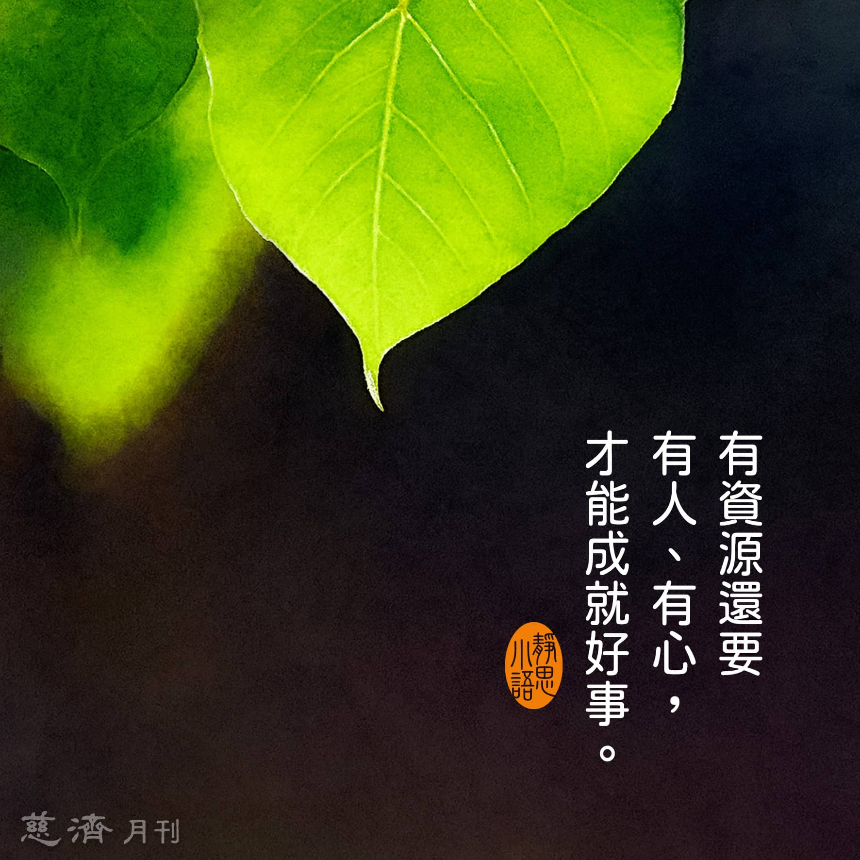 【靜思小語】有資源還要有人、有心,才能成就好事。