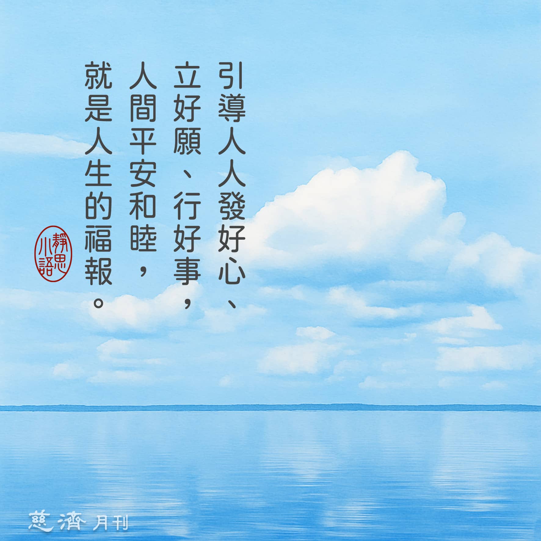 【靜思小語】引導人人發好心、立好願、行好事,人間平安和睦,就是人生的福報。