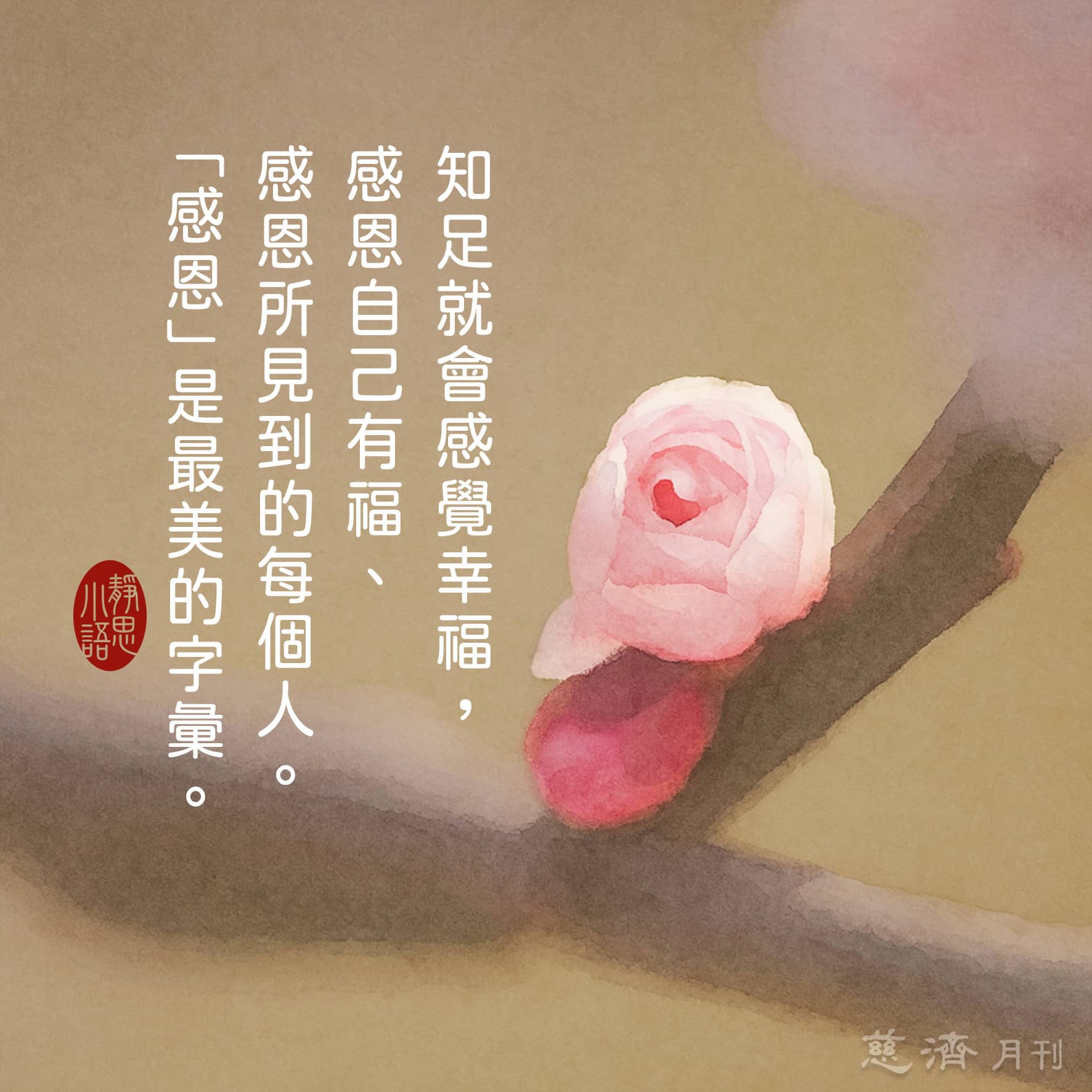 【靜思小語】知足就會感覺幸福,感恩自己有福、感恩所見到的每個人。「感恩」是最美的字彙。