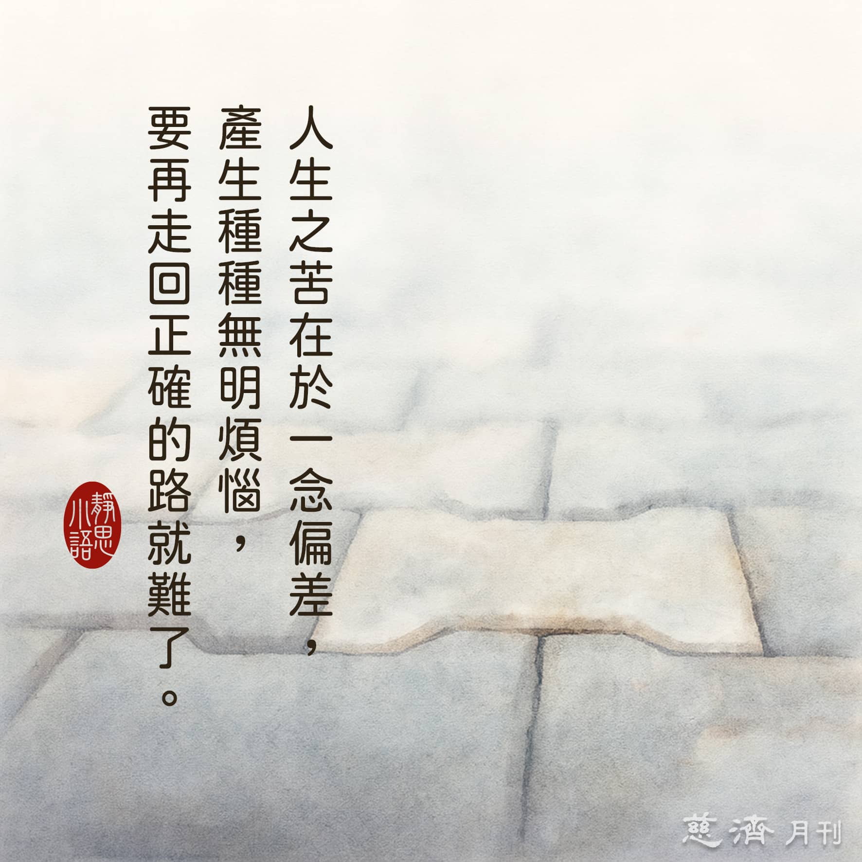 【靜思小語】人生之苦在於一念偏差,產生種種無明煩惱,要再走回正確的路就難了。