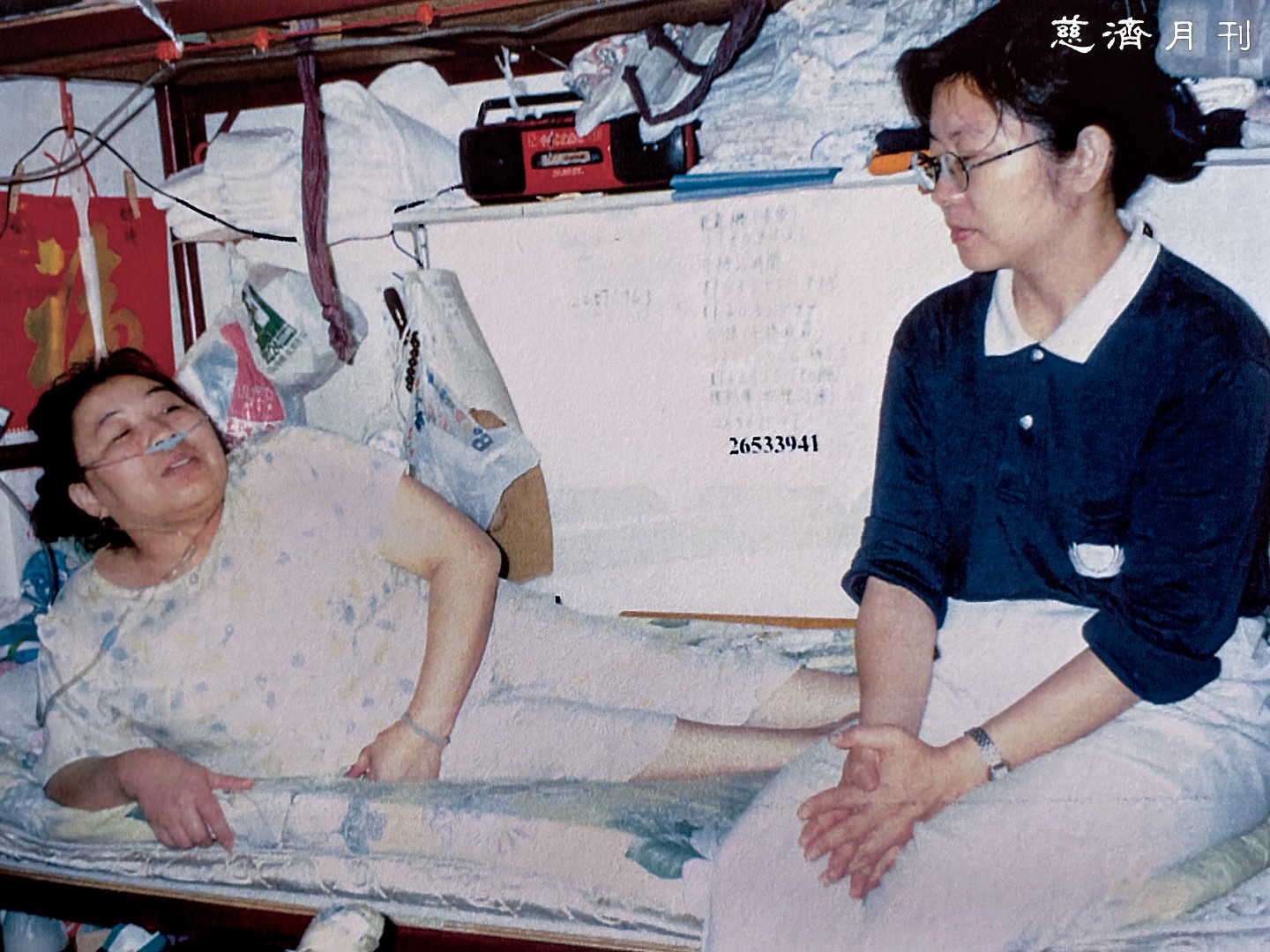 在慈濟香港聯絡處於一九九三年八月成立前,香港慈濟人已開始慈善工作;首位個案為下半身癱瘓的劉女士,慈濟一九九二年冬天接案,周玉蓮與她話家常。(相片提供/慈濟香港分會)