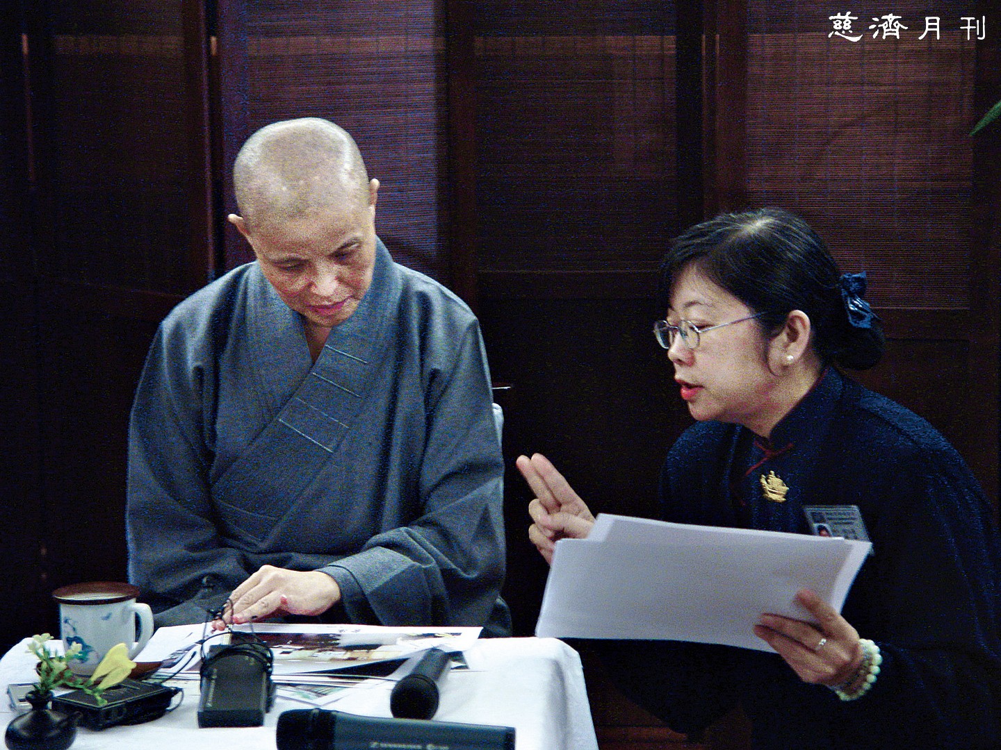 看到二○○六年靜思堂落成影片中,我採訪她的畫面,啊,不知不覺已經二十年了。當時她告訴我,沒事,只要在旁邊拿麥克風就好,後來才知原來當天是要跟大愛臺直播連線,我「上當了」。勇字胸前掛,初生之犢硬上,只因為她陪在我身邊,才能完成任務。