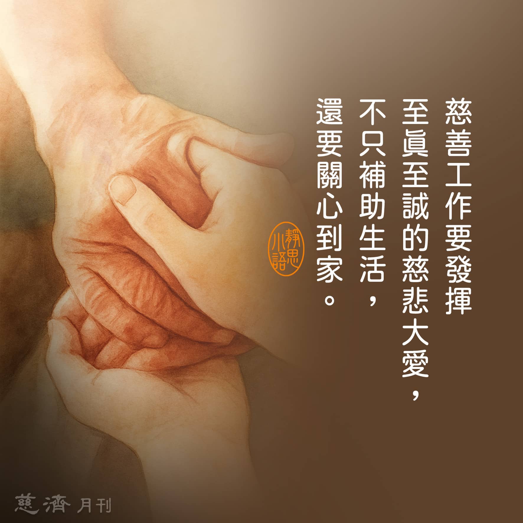 【靜思小語】慈善工作要發揮至真至誠的慈悲大愛,不只補助生活,還要關心到家。