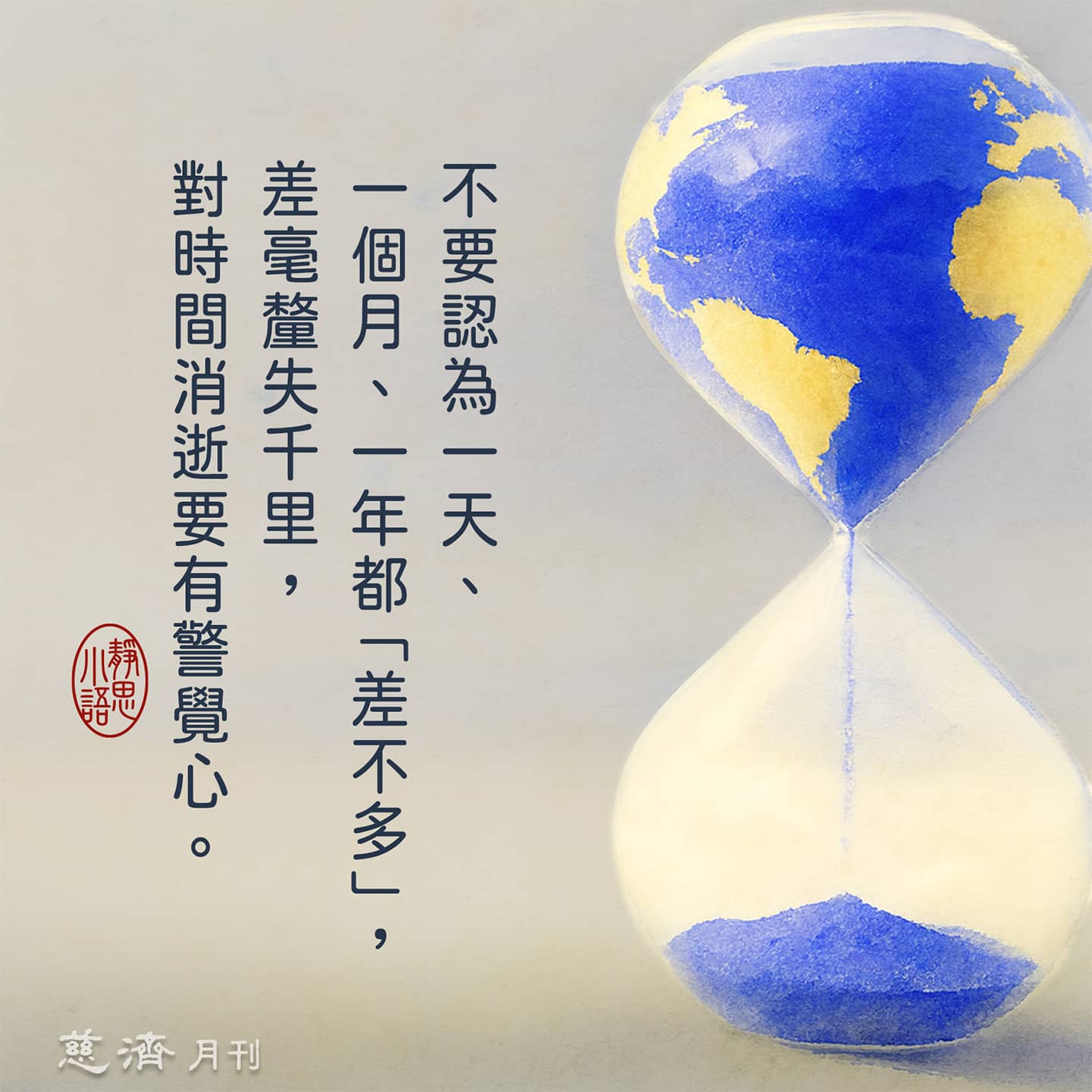 【靜思小語】不要認為一天、一個月、一年都「差不多」,差毫釐失千里,對時間消逝要有警覺心。
