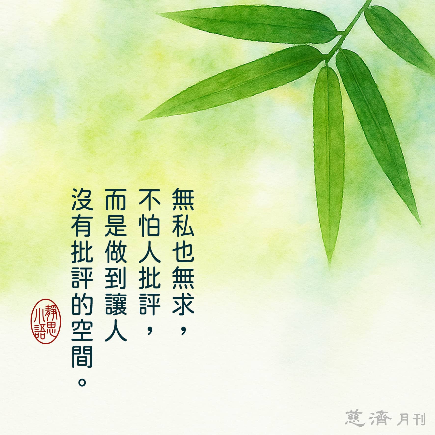【靜思小語】無私也無求,不怕人批評,而是做到讓人沒有批評的空間。
