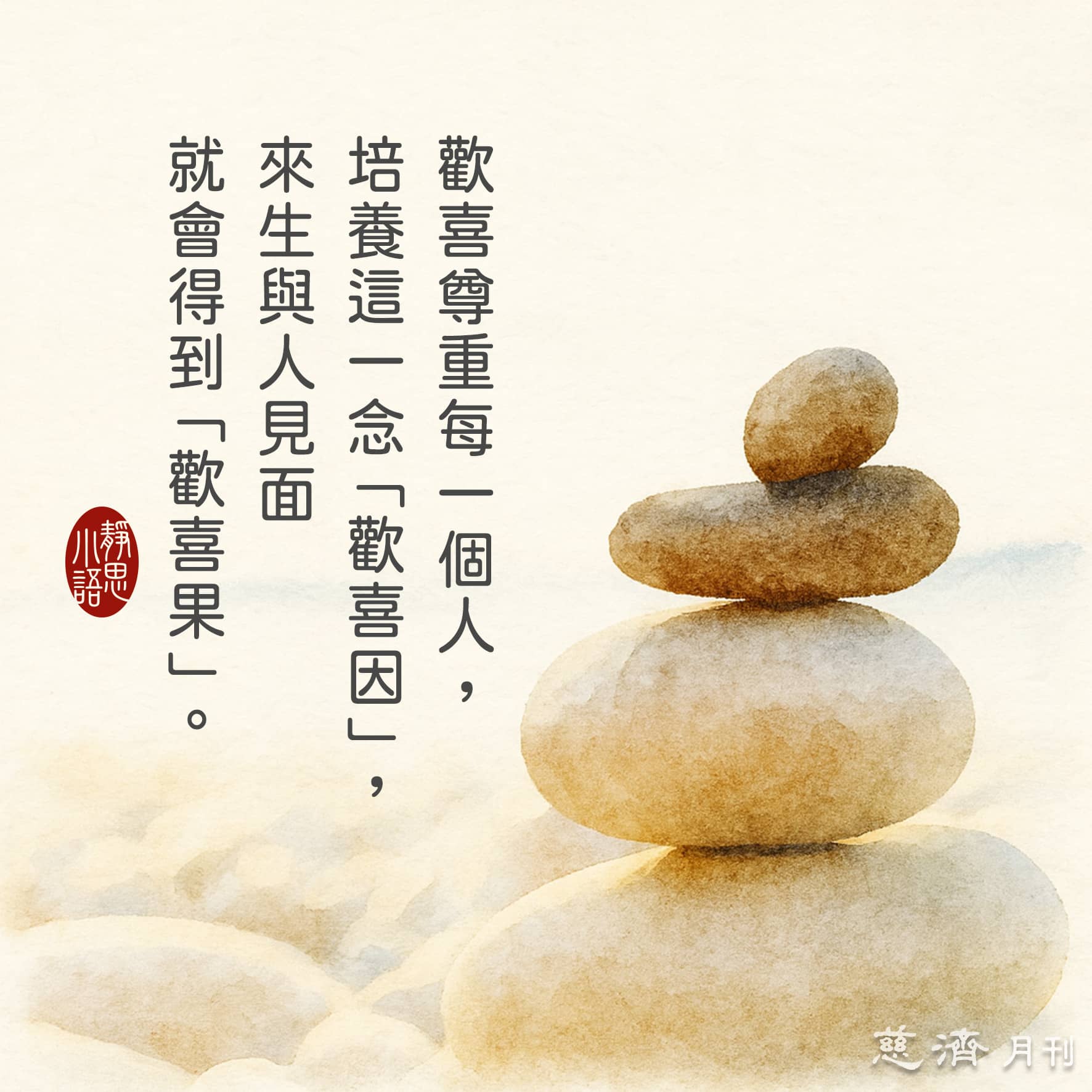 【靜思小語】歡喜尊重每一個人,培養這一念「歡喜因」,來生與人見面就會得到「歡喜果」。
