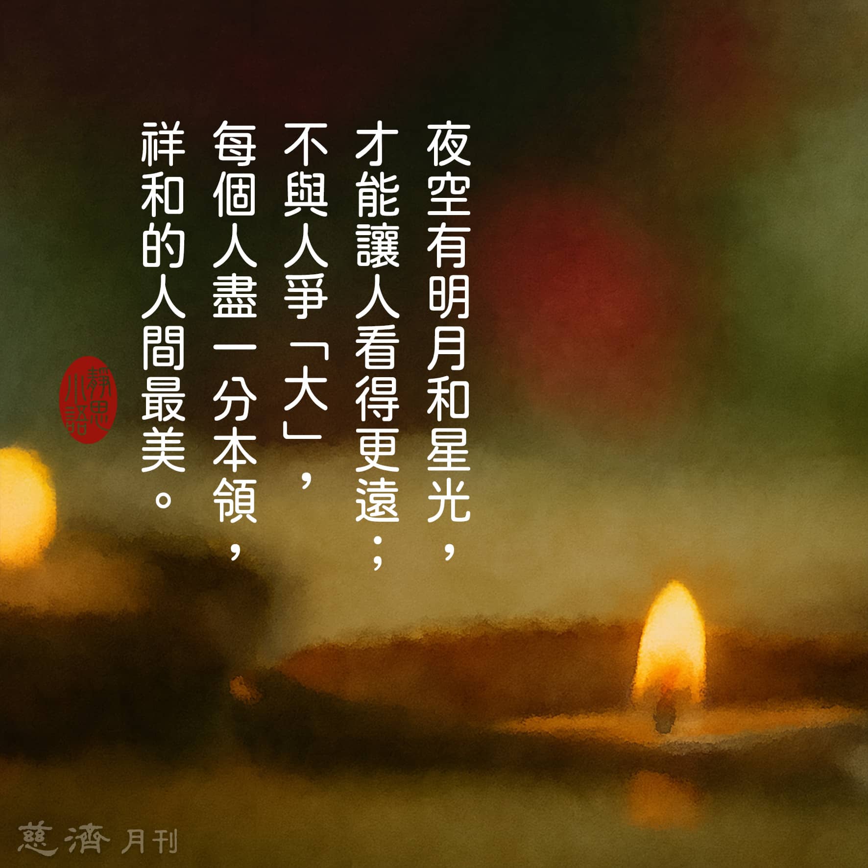 【靜思小語】夜空有明月和星光,才能讓人看得更遠;不與人爭「大」,每個人盡一分本領,祥和的人間最美。