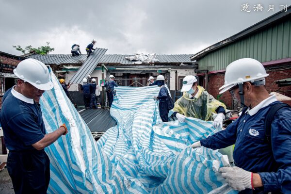 丹娜絲颱風七月六日登陸,造成臺南、嘉義房屋受損災情,慈濟志工於急難救助後展開弱勢家庭修繕,預計超過一百七十戶;八月三日,西南氣流豪雨方歇,工班團隊回到臺南七股區頂山里一戶覆上屋頂。(攝影/黃筱哲)